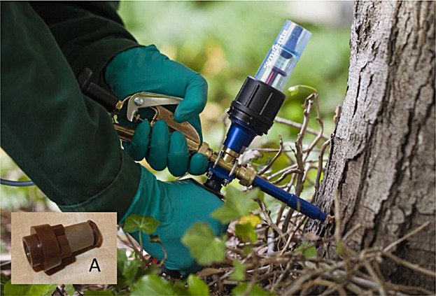 a 21st century pest control alternative to foliar spraying. Spraying a tree canopy can be especially difficult in some conditions such as areas of high wind, very large trees or areas bordering water bodies. Microinjection